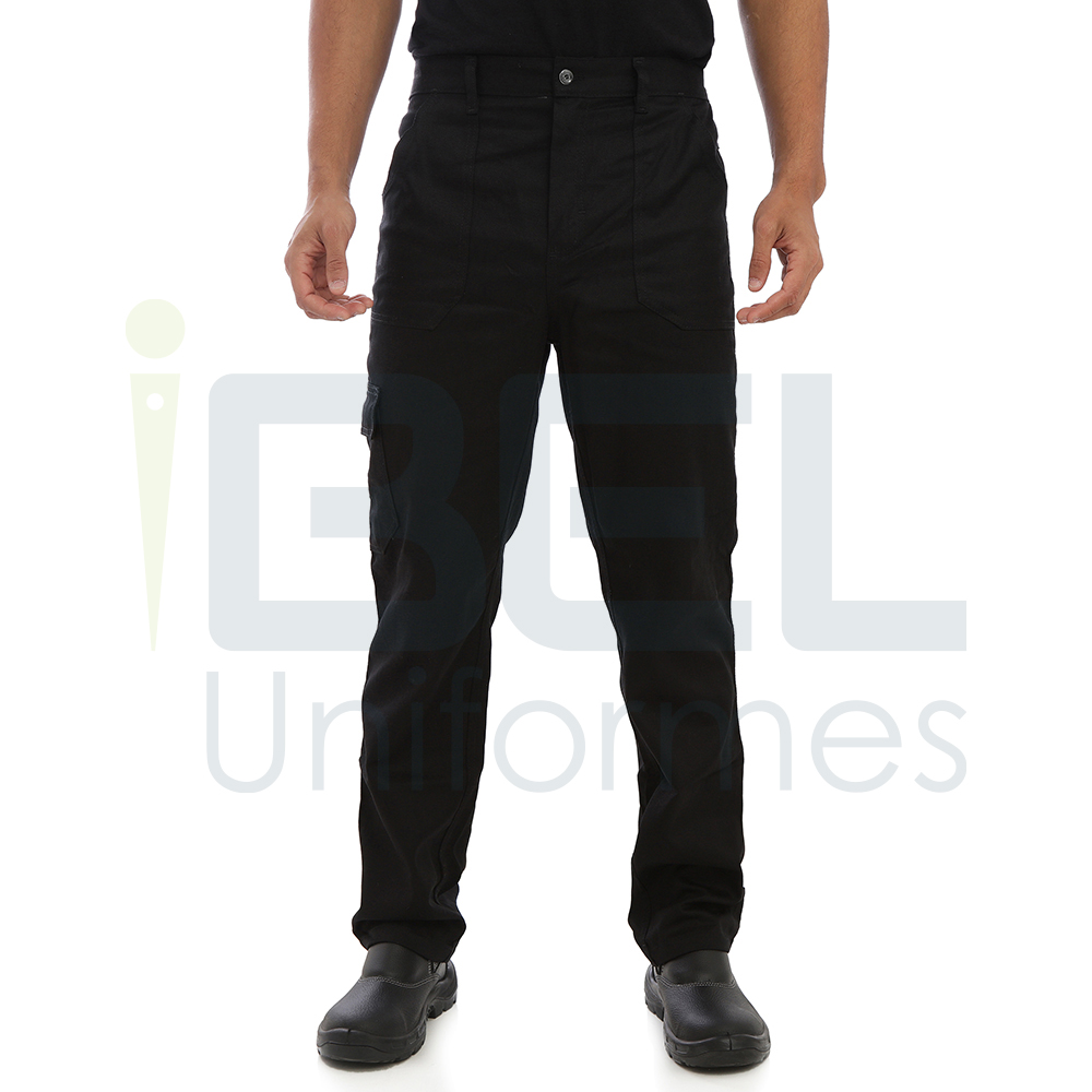 CALÇA CINTURA ½ ELÁSTICO, BRIM PROFISSIONAL PESADO, 100% ALGODÃO, BOLSOS CARGO NAS PERNAS.